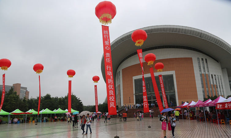 从校大门到体育馆,彩旗飘扬,指示路牌简明醒目;学长学姐们原创的迎新招贴营造出喜庆、温馨的氛围;青年志愿者在沿途服务点为新同学及家长提供各种帮助和服务,此时此刻,每个人心里有一个共同的声音:接过你的行囊,我们就是一家人!