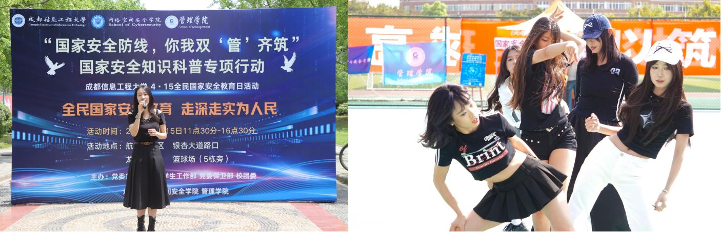 活动现场,网络空间安全学院文艺部与管理学院艺术团分别在两校区同步进行主题文艺表演,为活动添彩。演员们活力满满,灵动舞姿搭配美妙歌声,引得众多师生纷纷驻足,现场气氛被彻底点燃,为严肃的知识学习增添了轻松愉悦的氛围。