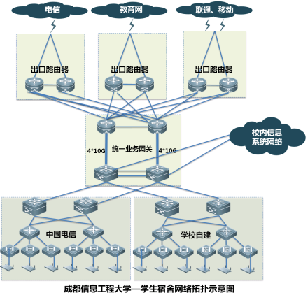 为了方便各位同学在学生宿舍接入校园网络,避免以往既开电信网又开校园网的窘况,节约上网费用,经中国电信与学校协商,学校将中国电信学生宿舍宽带与伟德国际1949校园网互联融合,实现既可使用电信的高速宽带出口访问互联网,又可访问校内选课、评教、教学平台、图书馆等校内信息系统。自此,我校学生宿舍区形成两张冗余备份网络,提供高可靠、高质量的校园网络接入服务。