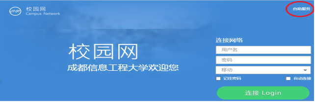 用户名和密码为进学校统一身份认证系统的用户名和密码,网络连接根据自己所开户的运营商选择电信、移动、联通。未在本认证系统中绑定运营商(电信、移动、联通)宽带账号的用户,需要通过电脑浏览器登录认证系统自助服务页面(点击登录页面右上角的“自助服务”进入)绑定相应运营商宽带账号,方可在校内公共区域使用自己订购的运营商宽带高速上网。
