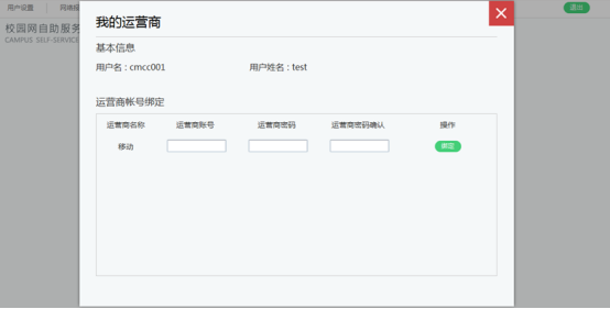 自助服务平台地址(图四),登陆成功后,点击“我的运营商”(图五),输入营运商账号和密码信息,即可完成绑定(图六)。