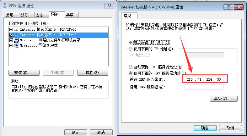 第四步: 创建VPN连接后,对该VPN连接进行DNS设置;