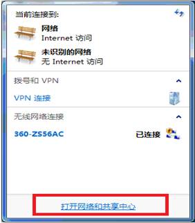 第一步:打开刚才新建的连接。从您屏幕右下角“打开网络和共享中心”里面选择。如下图(在此之前应已连接上公网,即计算机已能上网):