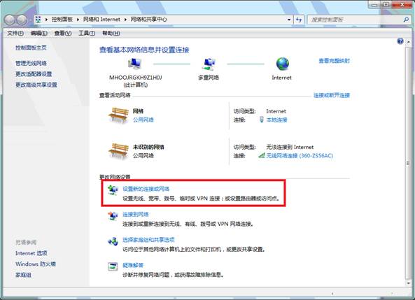 第二步:在“网络共享中心”界面选择“设置新的连接或网络”