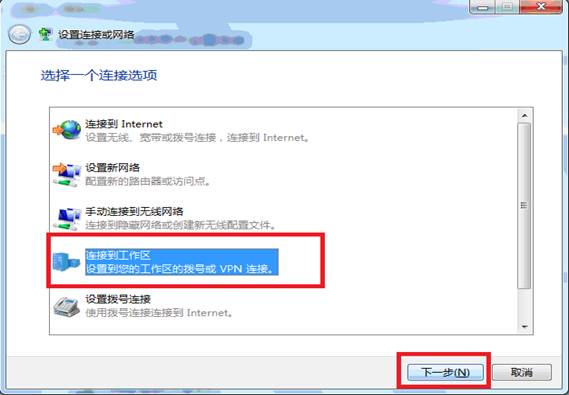 第三步:在“设置连接或网络界面”,选择“连接到工作区”,然后点击“下一步”