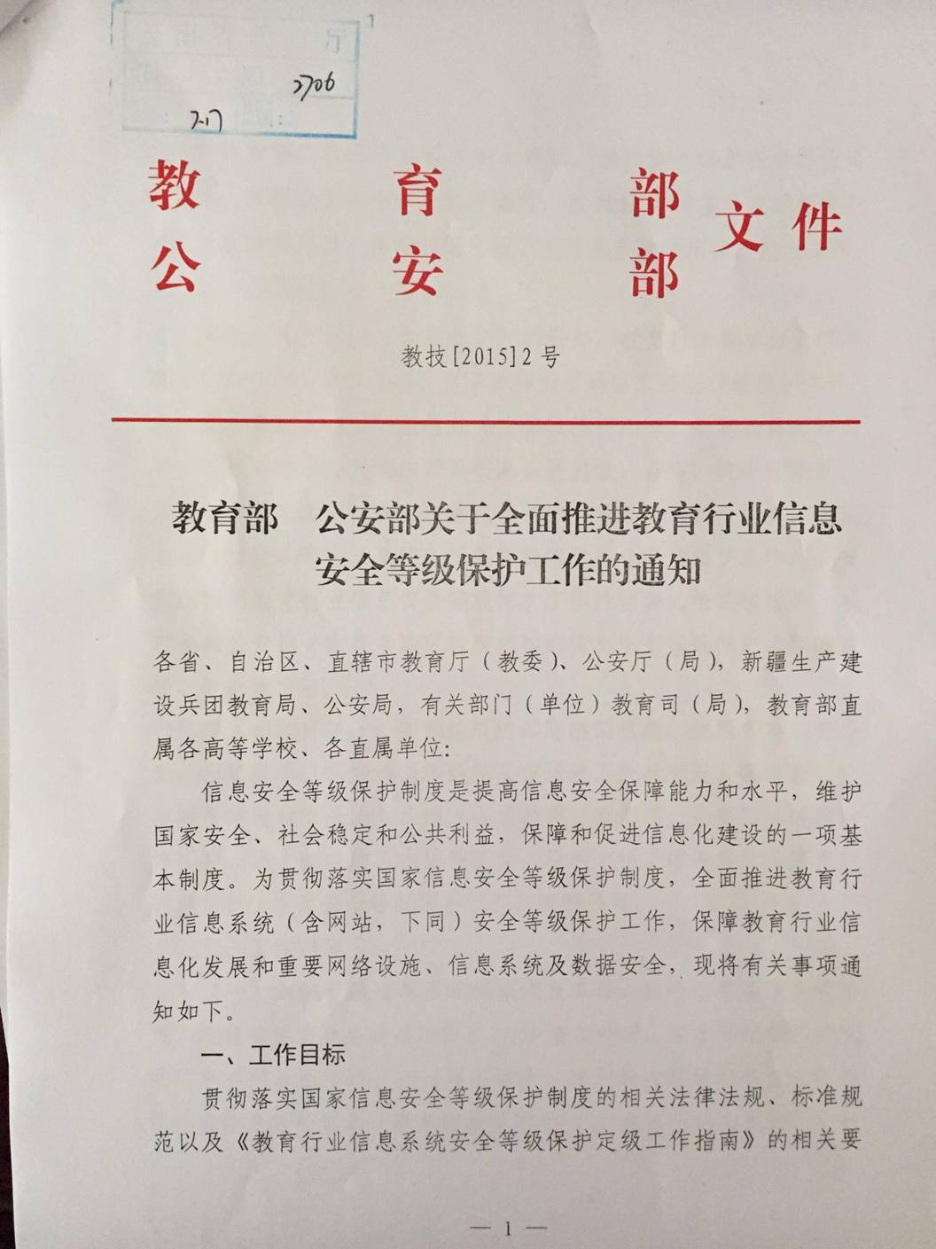 关于全面推进教育行业网络安全等级保护工作的通知