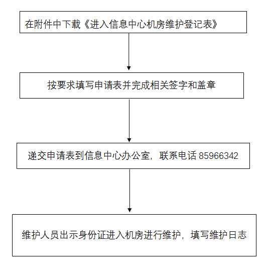 2.进入中心机房申请相关材料:《进入伟德国际1949机房维护登记表》